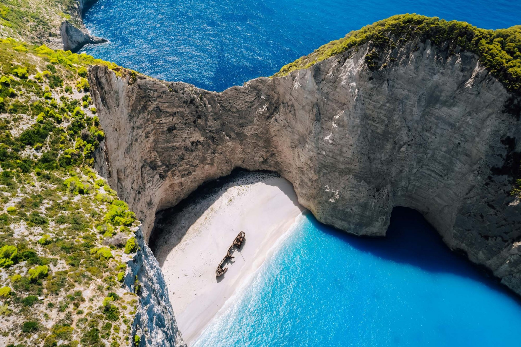Navagio Beach (Shipwreck Beach): Visit the iconic Navagio Beach with its famous shipwreck and crystal-clear waters—one of the most photographed spots in Greece.